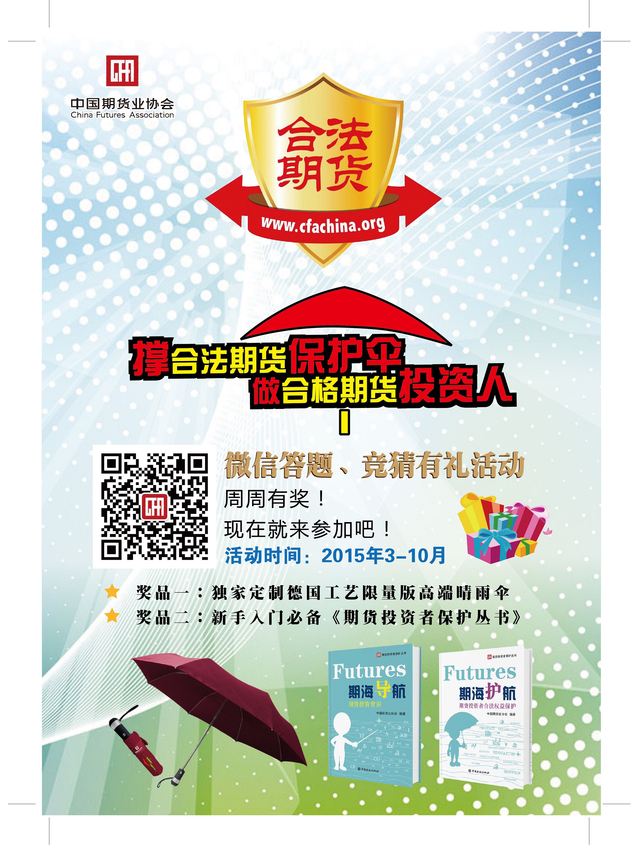 根據中國期貨業(yè)協會發(fā)布的《關于開展“撐合法期貨保護傘、做合格期貨投資人”微信有獎答題活動的通知》,為進一步提高投資者保護意識,推進投資者保護教育活動,公司組織開展投資者微信有獎答題活動。現就有關事項通知如下: