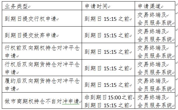 客戶在期權(quán)合約到期日當(dāng)天辦理行權(quán)、放棄行權(quán)業(yè)務(wù)時(shí)間及渠道見下表:
