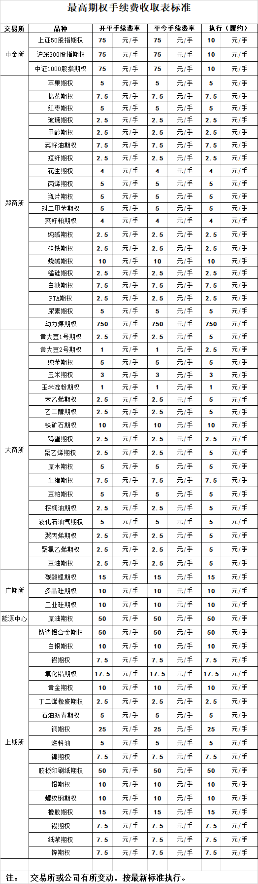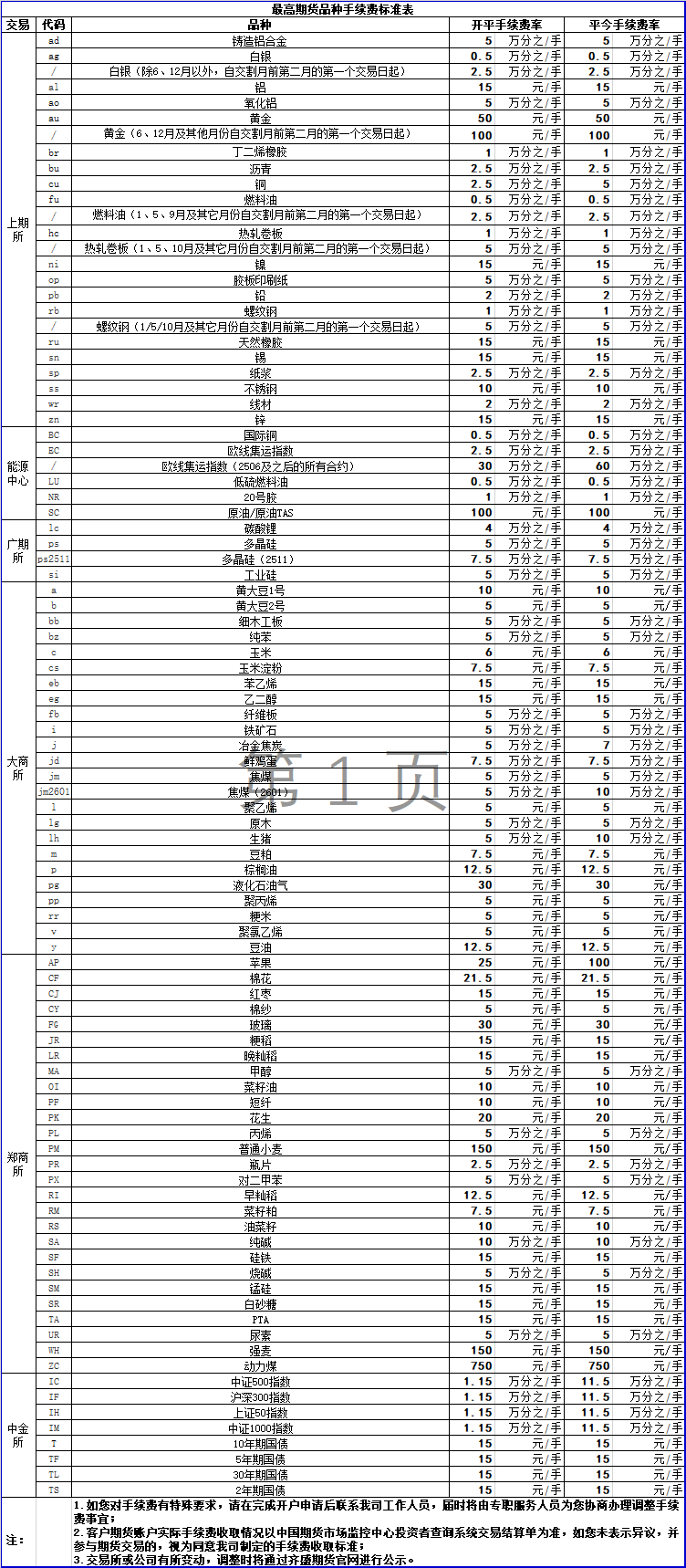 手續(xù)費(fèi)公示
