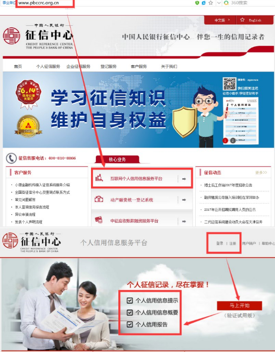 2、點(diǎn)擊互聯(lián)網(wǎng)個(gè)人信用信息服務(wù)平臺(tái)