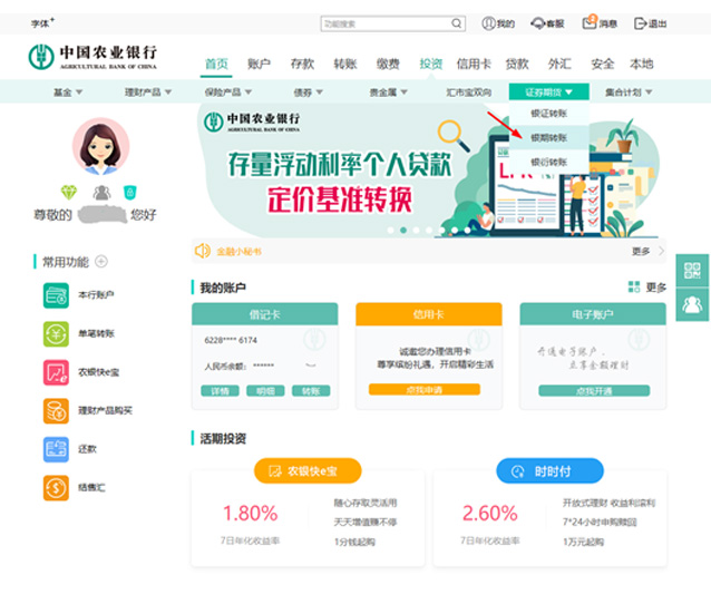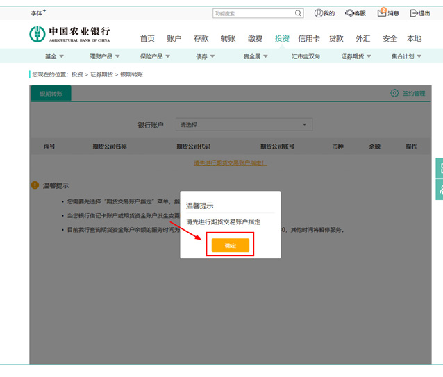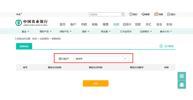 選擇“投資“-”證券期貨“-”銀期轉賬“。