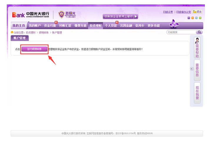 選擇“投資理財(cái)-銀期轉(zhuǎn)賬-賬戶管理”。