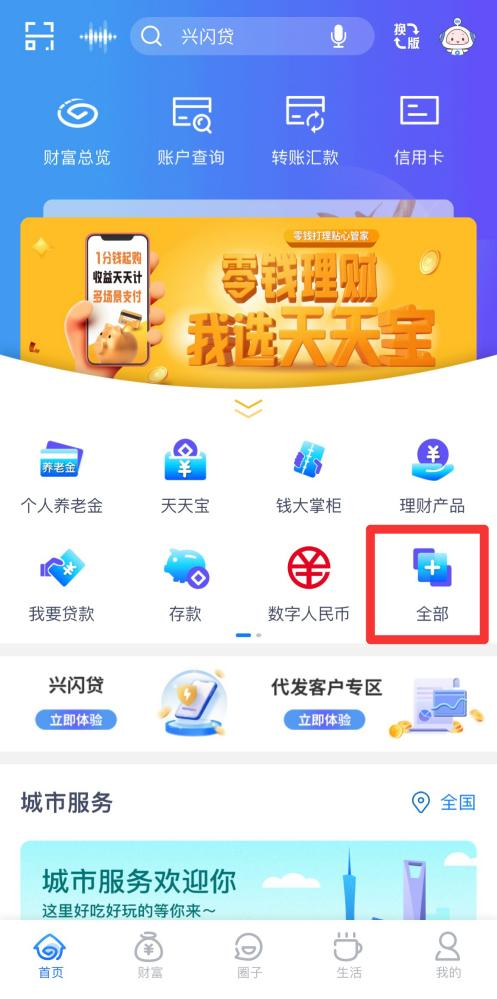 登錄網(wǎng)銀,選擇“全部“。